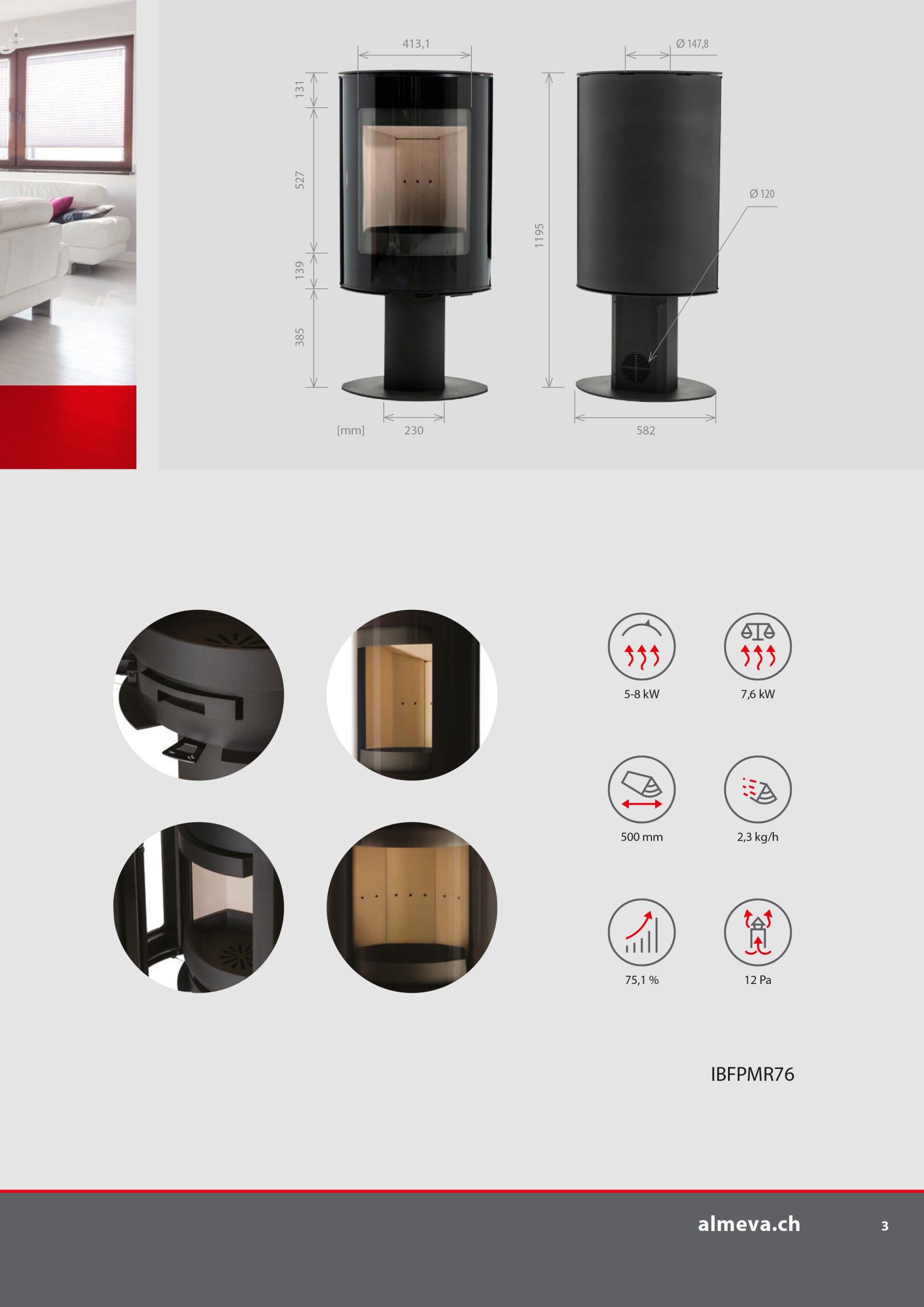 Der Kaminofen kann in der Mitte des Innenraums platziert und in die gewünschte Position gedreht werden.