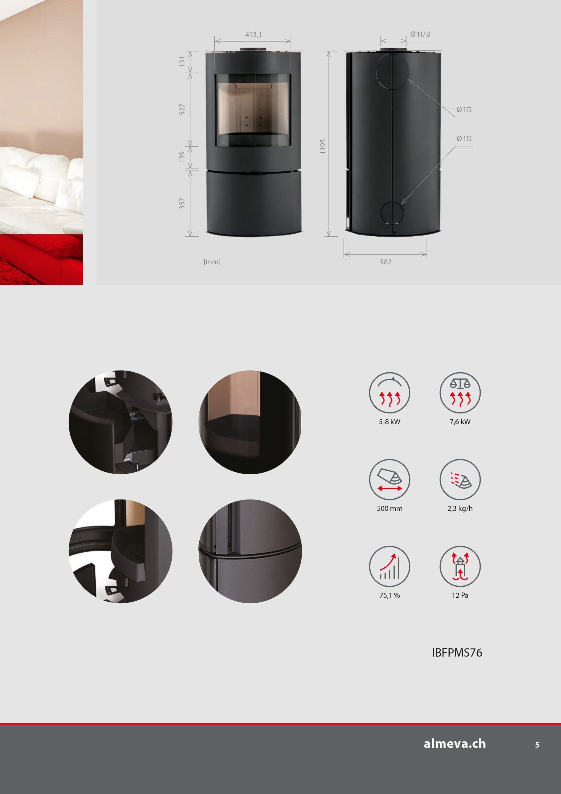 • Max. Länge der Holzscheitel 50 cm