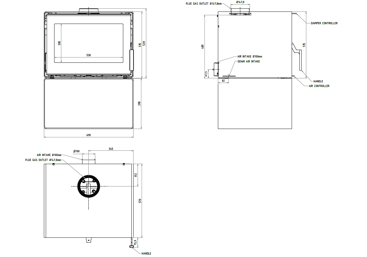 - Kaminanschluss: 150 mm