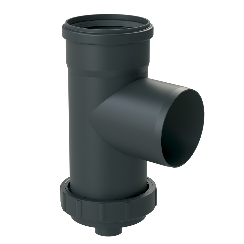 Umlenk-T m. Ablauf · Té dérivation avec purge · Deviazione a T con sc/condensa