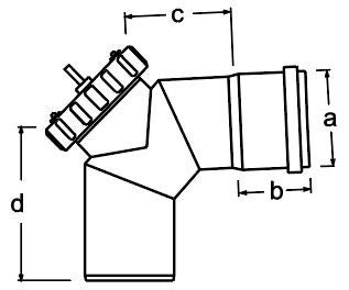 Revisionsbogen 87° · Coude 87° avec trappe de visite · Curva ispezione 87°